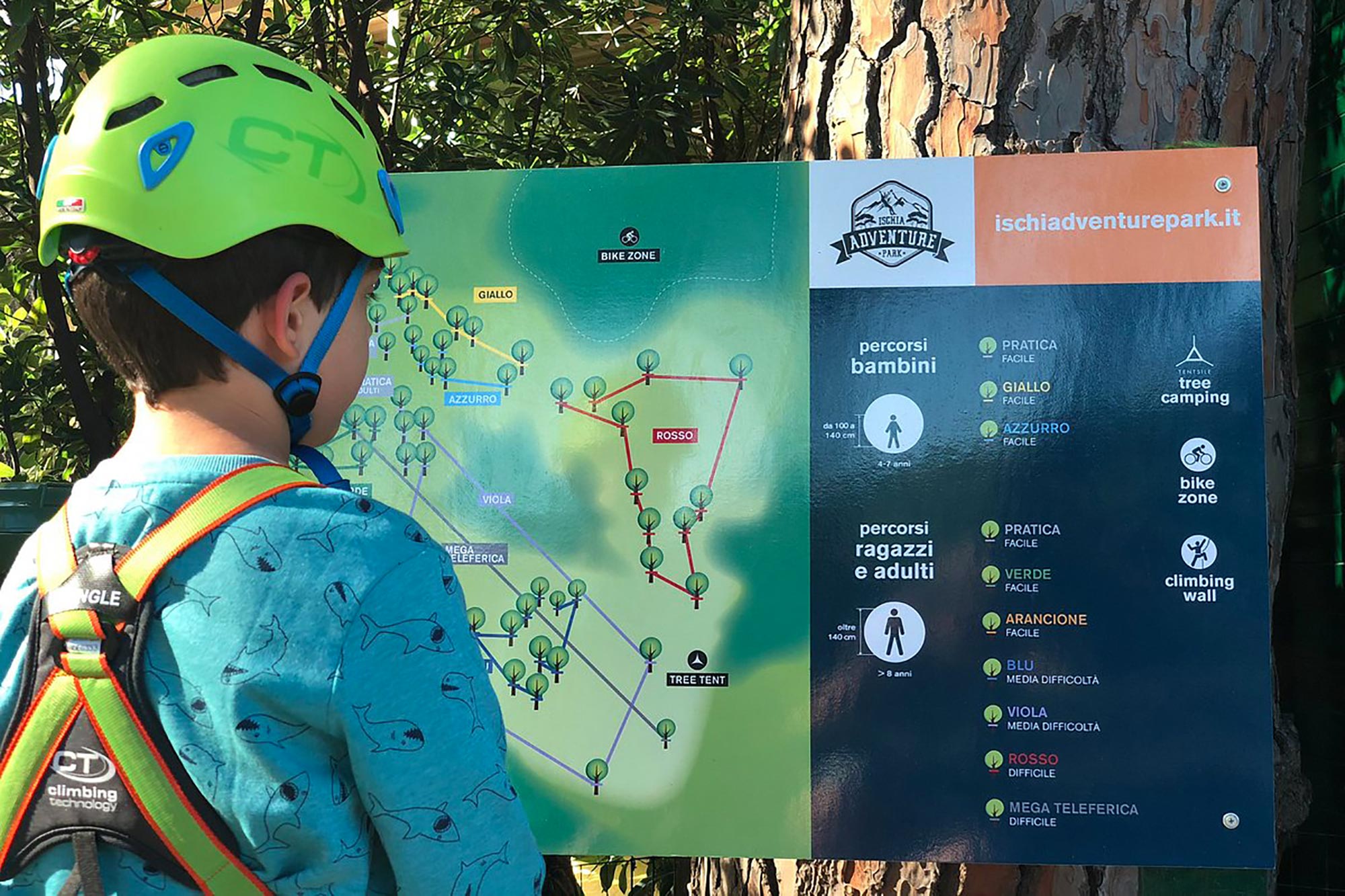 I percorsi per bambini (dai 4 ai 7 anni, da 100 a 140 centimetri) sono suddivisi in Pratica (facile), Giallo (facile), Azzurro (facile) e Junior Zipline (facile).