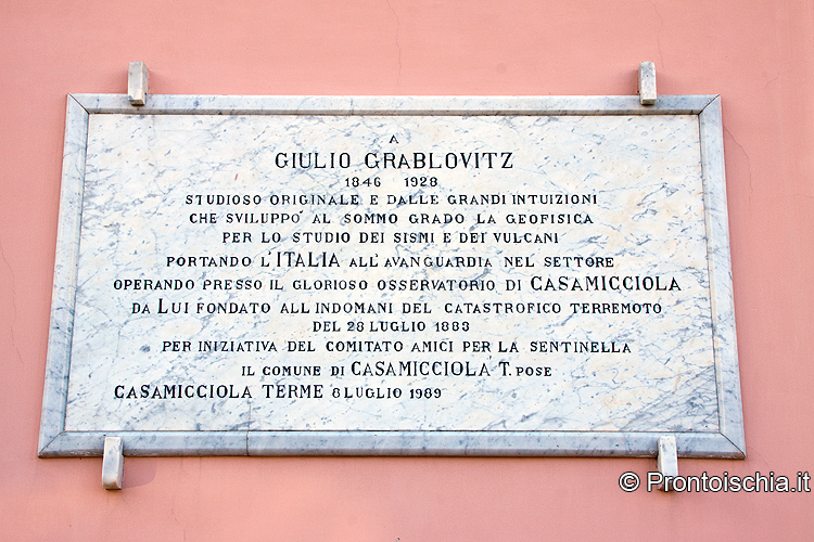 A tal riguardo il governo provvide a istituire sulla collina de La Sentinella, nella parte alta della cittadina termale, un Osservatorio Geofisico che, sotto la guida sapiente del Dott. Giulio Grablovitz (1846 - 1928), per quasi trent’anni ha registrato e segnalato all’Ufficio Centrale di Meteorologia e Geodinamica di Roma, ogni minimo sussulto e movimento del sottosuolo dell’isola. A proposito della figura di Grablovitz, va riconosciuto, che pur essendo un autodidatta, nient’altro che un impiegato di banca con una profonda passione per i fenomeni naturali, svolse il suo ruolo di Direttore dell’Osservatorio con scrupolo e risultati eccezionali, arrivando addirittura a brevettare un congegno, battezzato "vasca sismica" in grado di registrare le onde dei terremoti che avvenivano a grandissima distanza. Si trattava di un pozzo circolare - 1 mt di diametro ed 1,5 mt di altezza - riempito con acqua distillata alle cui estremità, sugli assi NS ed EO, erano posizionati due galleggianti che oscillavano in presenza delle onde sismiche. La trascrizione dei dati avveniva poi con l’ausilio di alcuni pennini che riportavano l’andamento sismico su carta affumicata avvolta ad un tamburo rotante.