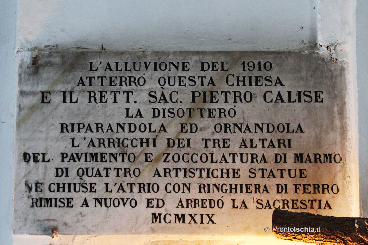 frazione di Panza. A volerne l'edificazione tal Erasmo Castaldi, la cui famiglia conservò il diritto di patronato sull'immobile fino al 1936, anno in cui la chiesa assurse a rango di parrocchia del popoloso quartiere di Forio.