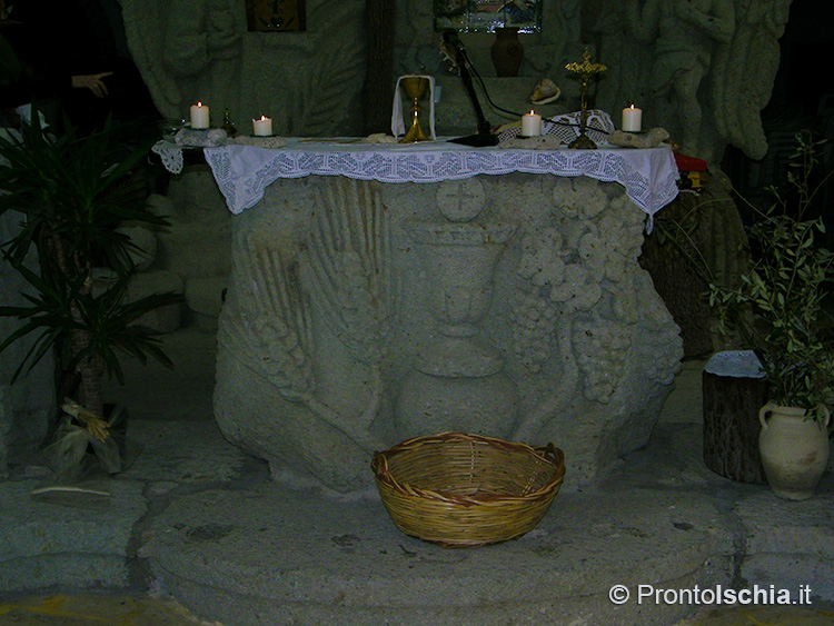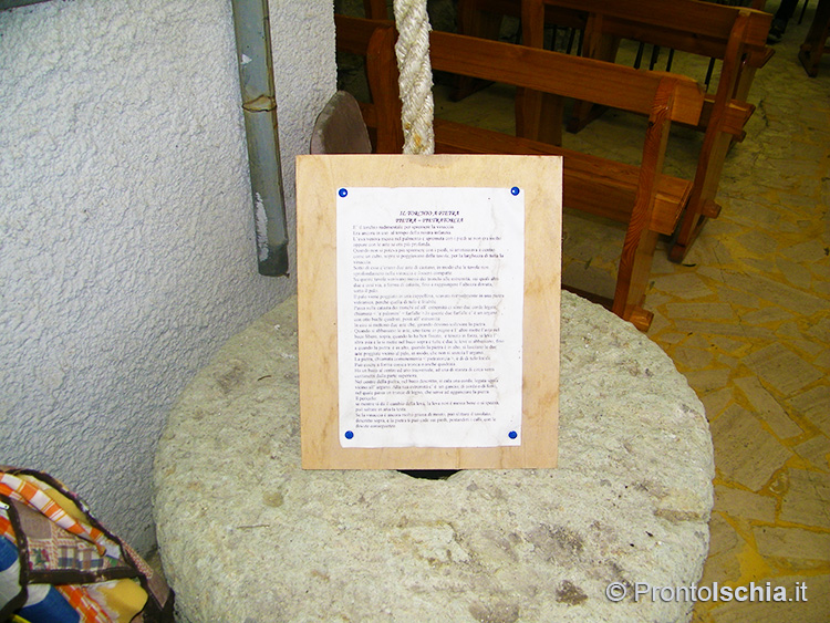 Anche l’uso prevalente del tufo verde è in linea con la storia geologica di Forio e dell’isola d’Ischia, come pure le decorazioni del grano, dell’uva, del Monte Epomeo, di Santa Maria al Monte e della pietratorcia (grosso masso circolare utilizzato per la seconda spremitura dei grappoli) raccontano di un’isola di contadini sorretti da un forte sentimento di fede.