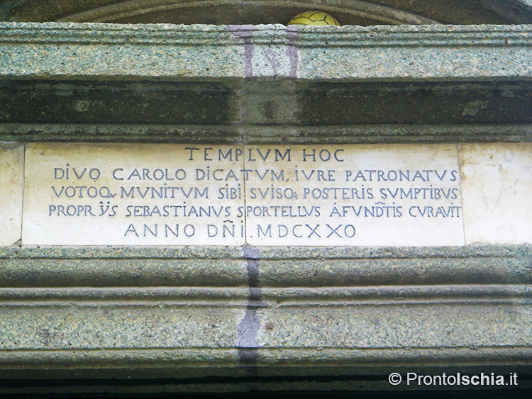 Lo storico locale Giuseppe D’Ascia (1822 - 1889), autore della monumentale Storia dell’Isola d’Ischia, in un primo momento riferì di una cronaca secondo la quale la chiesa di San Carlo sarebbe stata edificata da una famiglia milanese riparata a Forio per sfuggire alla peste che invase la città meneghina nel 1576, salvo asserire poco dopo, invece, che la chiesa fu fatta erigere da tale Sebastiano Sportiello da Salerno per espiare l’omicidio, commesso insieme ad altri due fratelli, del vescovo della sua città. Inoltre, sempre secondo D’Ascia anche la Chiesa di Santa Maria al Monte, antico villaggio rurale alle pendici del Monte Epomeo, sarebbe stata costruita dallo Sportiello, sempre con il medesimo intento espiativo.