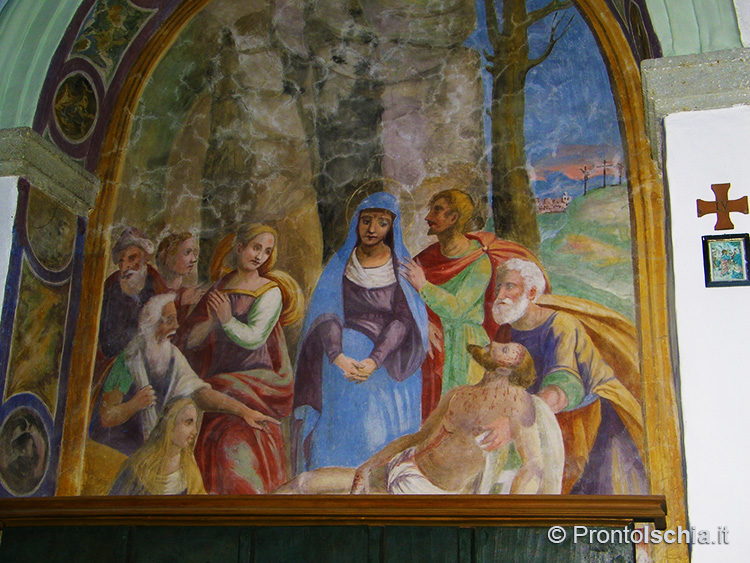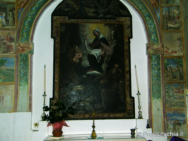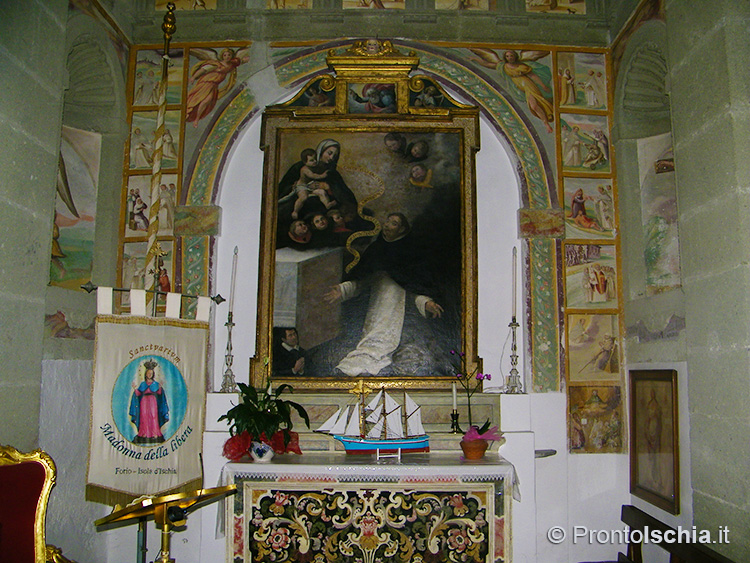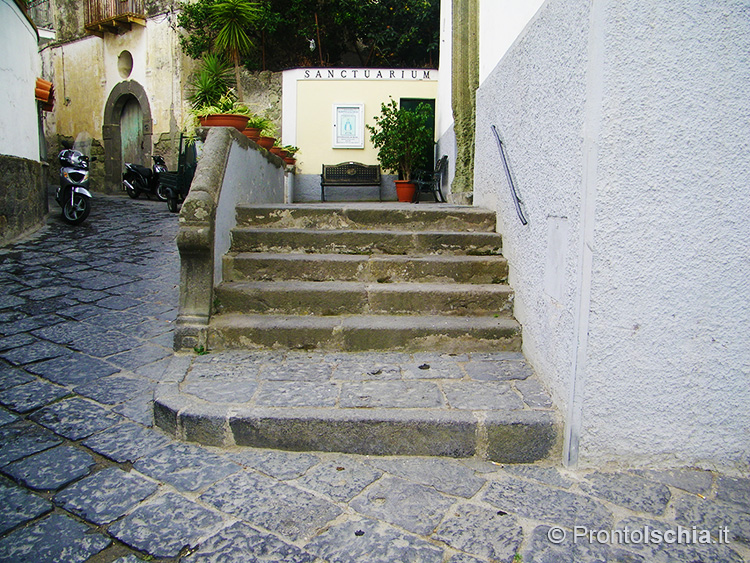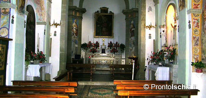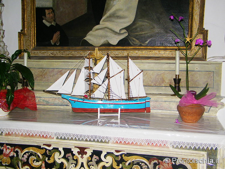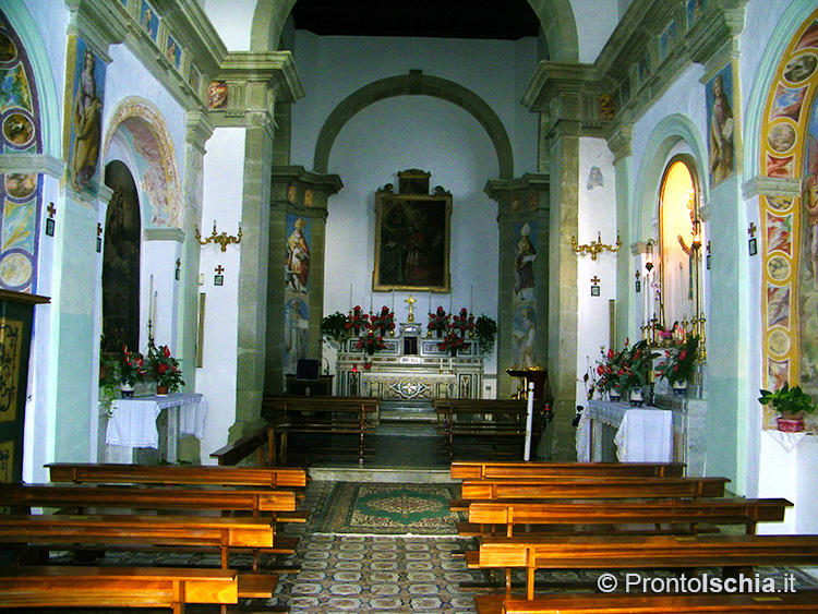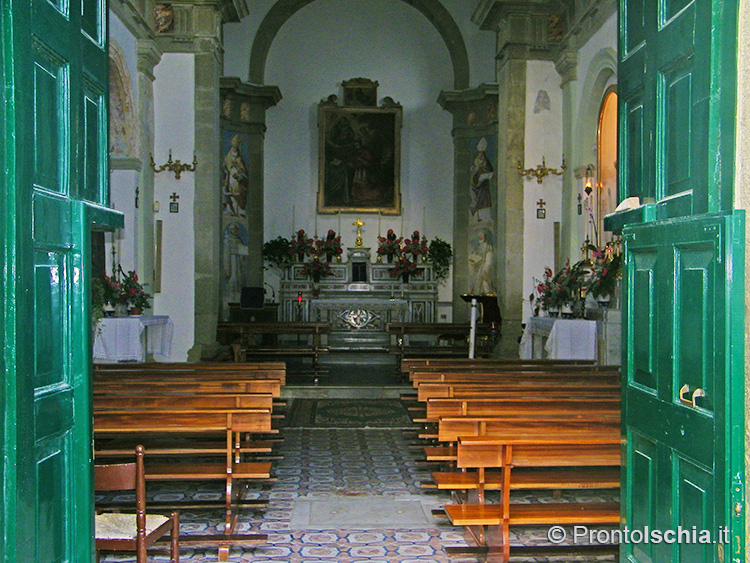 C’è però un dato su cui non c’è alcun dubbio. Se pure il santo venerato è lombardo, l’architettura dell’edificio è assolutamente locale. Lo si evince dall’ampio uso del tufo verde del Monte Epomeo, la caratteristica pietra locale con cui sono stati realizzati tutti gli archi, compreso quello del portale di ingresso, il cornicione, i pilastri, nonché il rivestimento di alcune cappelle all’interno della struttura.