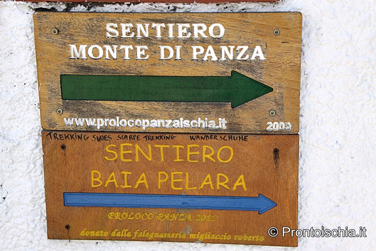 Imboccando la stradina laterale che poco dopo la piazza di Panza (Forio) conduce alla baia di Sorgeto vale la pena seguire le indicazioni per i due sentieri del Monte di Panza e la Baia della Pelara. Si tratta di due percorsi naturalistici che, dopo anni di incuria e abbandono, sono stati recuperati alla libera fruizione da un gruppo di volenterosi cittadini della frazione.