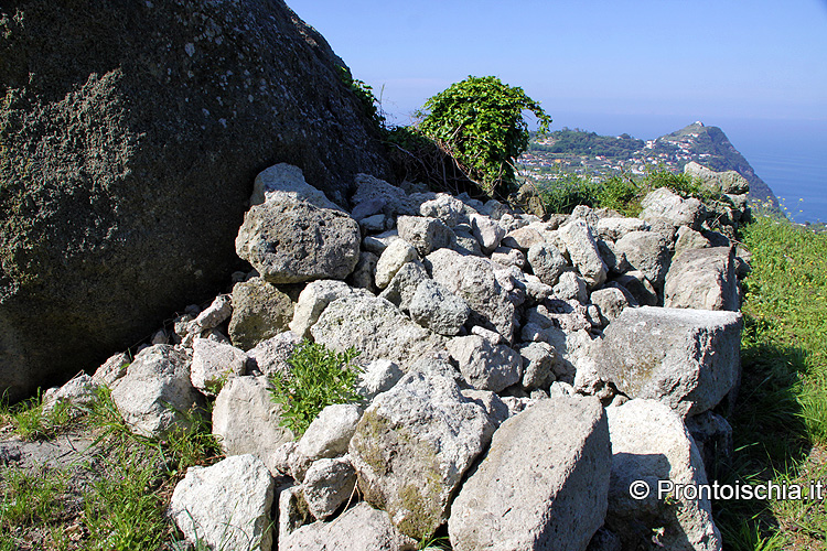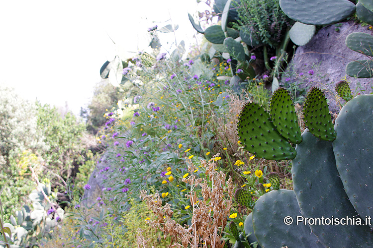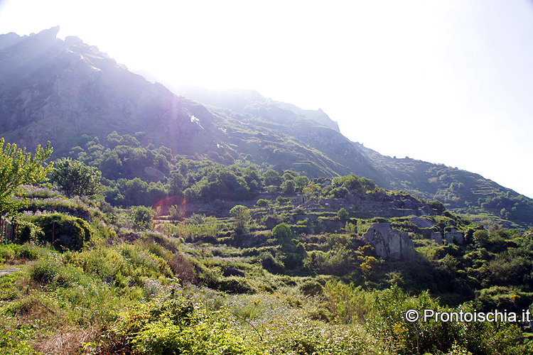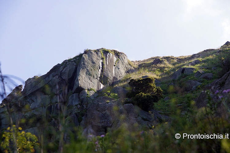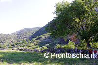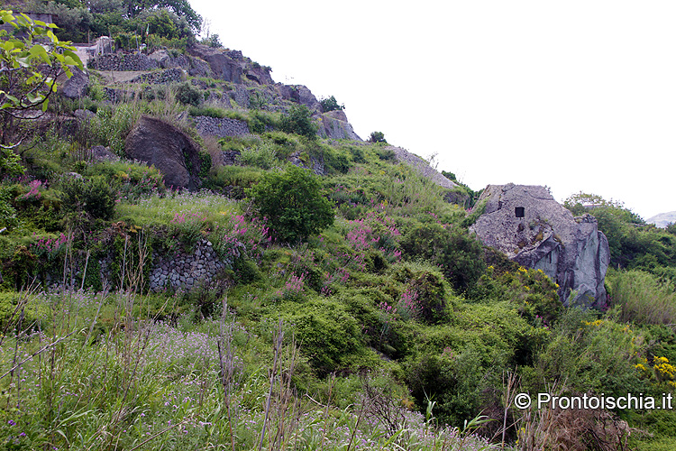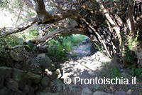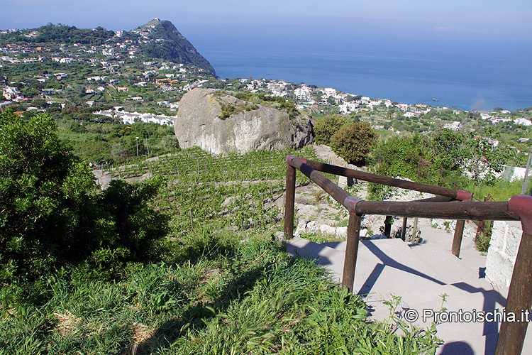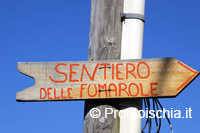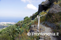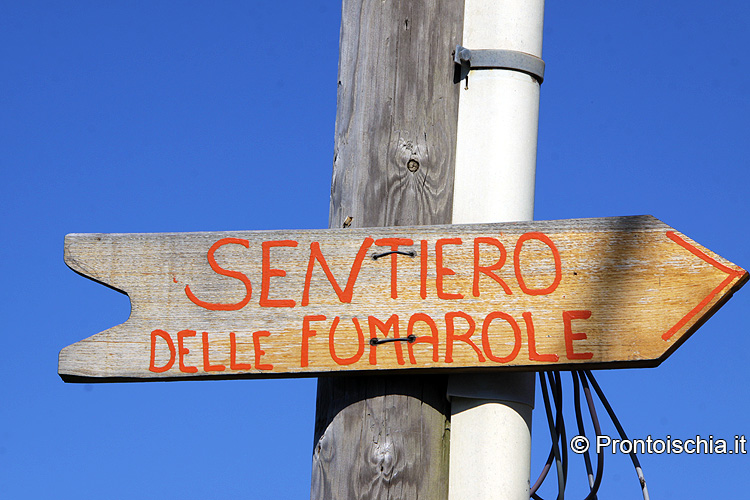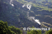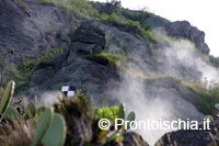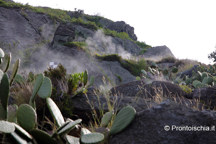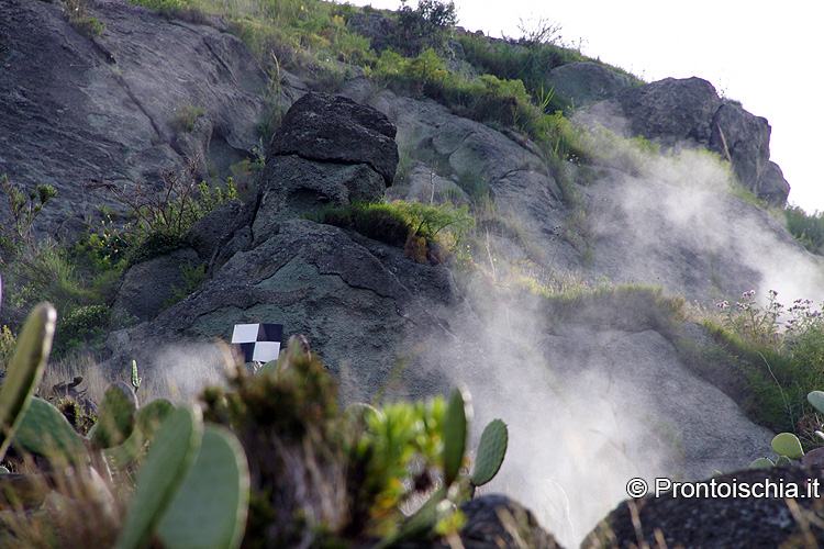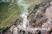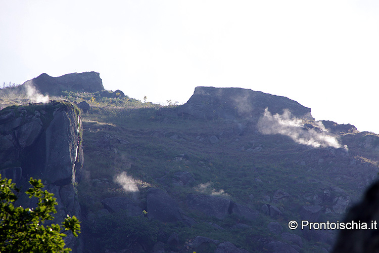 Meno di un chilometro e si arriva nei pressi di una fumarola - lungo i fianchi della montagna se ne vedono molte altre - in posizione panoramicissima, con lo sfondo di tutto il litorale di Forio e il primo piano di Punta Imperatore, la collina che cinge la famosissima spiaggia di Citara.