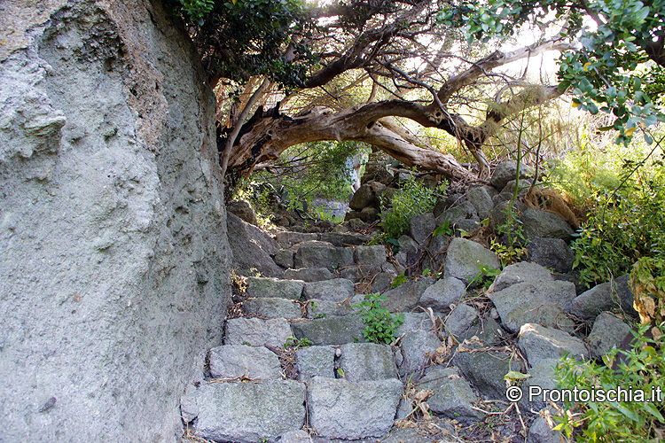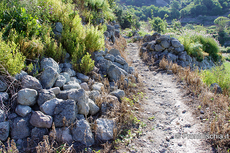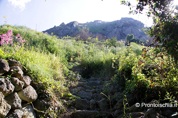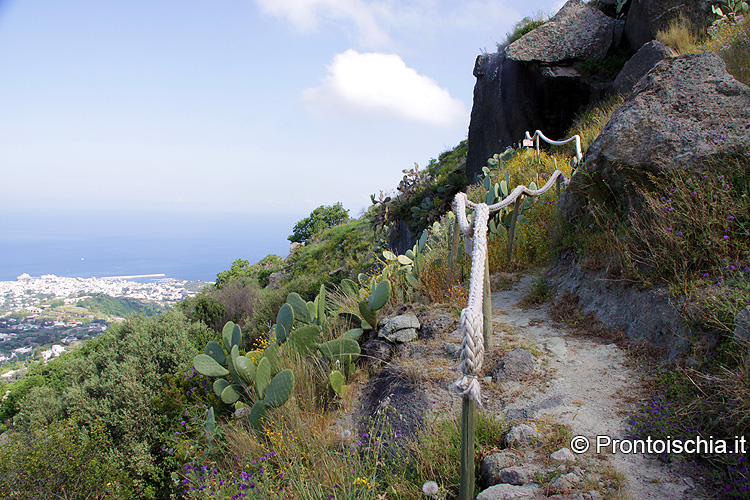 , parte uno stretto sentiero di montagna che, oltre al fatto di essere in salita, non presenta particolari difficoltà, se non le precauzioni solite che è tenuto a rispettare chi fa trekking.* Grazie infatti all’opera pregevole dei volontari della ProLoco di Panza, il sentiero è stato ripulito dei rovi e in alcuni tratti puntellato sì da renderlo agevole a chi vuole inerpicarsi per questo lato del Monte Epomeo.
