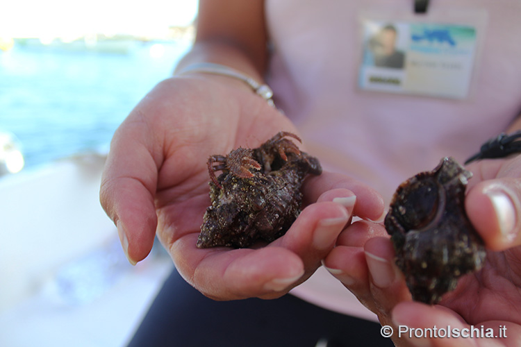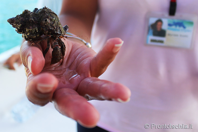 Tutto visibile tra i 3 e i 7 metri di profondità della baia dove, ovviamente, sono presenti molte altre specie. Tra le tante, ricci, stelle, oloturie, paguri che abbiamo avuto modo di conoscere da vicino grazie a un sub che coadiuva quest’interessante escursione archeobiomarina.