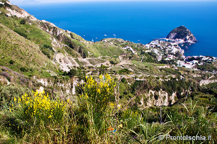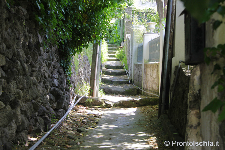 Subito dopo la Chiesa basta alzare lo sguardo verso la collina del Montagnone per capire perchè l’altro appellativo con cui Ischia è conosciuta nel mondo è ”isola verde”. Lungo il tragitto, la vista delle colline di Monte Vezzi e Campagnano dovrebbe fugare ogni ulteriore dubbio a chi ancora ne avesse.