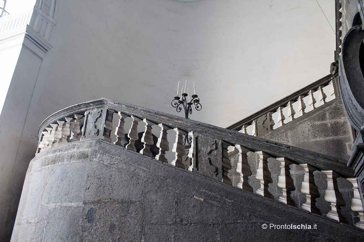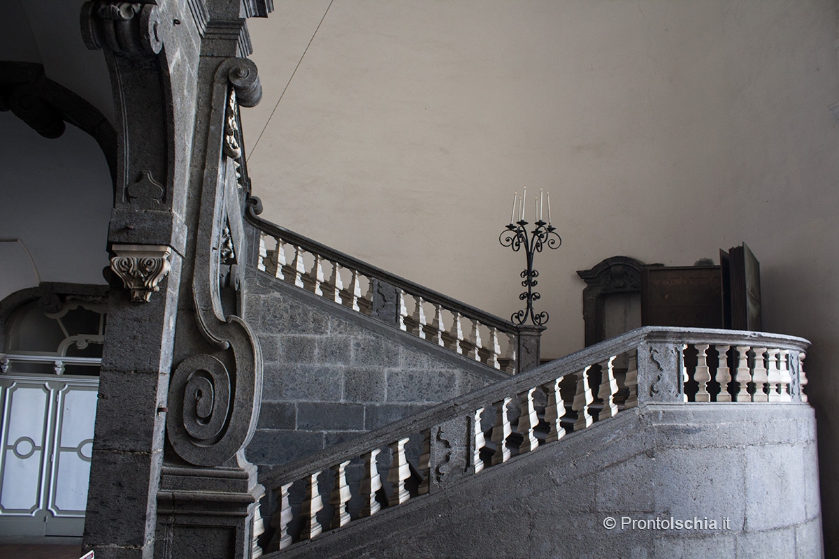 Il motivo è duplice: il cortile, infatti, si trova tra la bellissima scala barocca realizzata dall’architetto Ferdinando Sanfelice (1675-1748) e il portone che dà su via Egiziaca a Pizzofalcone. La particolarità di quest’ingresso, un tempo principale accesso al palazzo, è che è chiuso dal 1799.