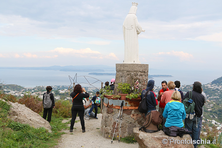 Finora ci si è soffermati su scorci e panorami dell’arcipelago flegreo con la vista prospettica di Procida e Vivara, le "sorelle" di Ischia. Ma se l’intenzione è afferrare con lo sguardo l’intero periplo dell’isola d’Ischia e poi Capri, la penisola sorrentina, le isole Pontine, il Circeo, allora non c’è che da salire sulla vetta del Monte Epomeo, 789 metri sul livello del mare. La cima del gigante buono dell’isola d’ischia è raggiungibile da diversi sentieri. La strada di accesso più semplice e comoda è Via Nuova Epomeo, poco dopo Piazza IV Novembre a Fontana (Serrara Fontana). In meno di un’ora si arriva in prossimità dell’antico eremo di San Nicola da Tolentino. Altrimenti c'è il sentiero della Pietra dell’Acqua e l'altro del bosco di acacie dei Frassitelli, entrambe con accesso da Via Nuova Falanga, poco dopo il cimitero comunale di Serrara Fontana.