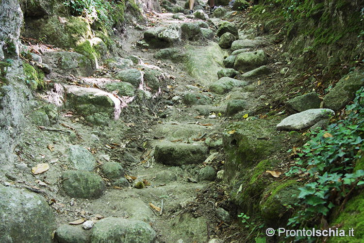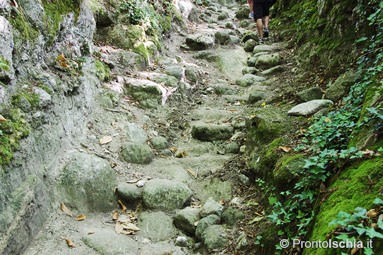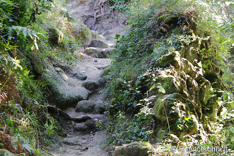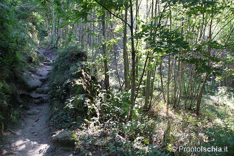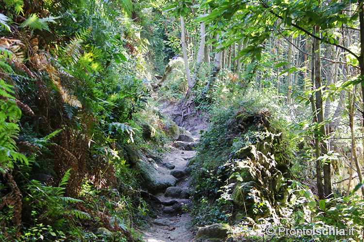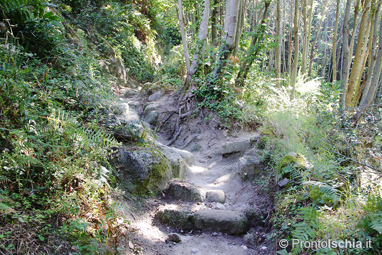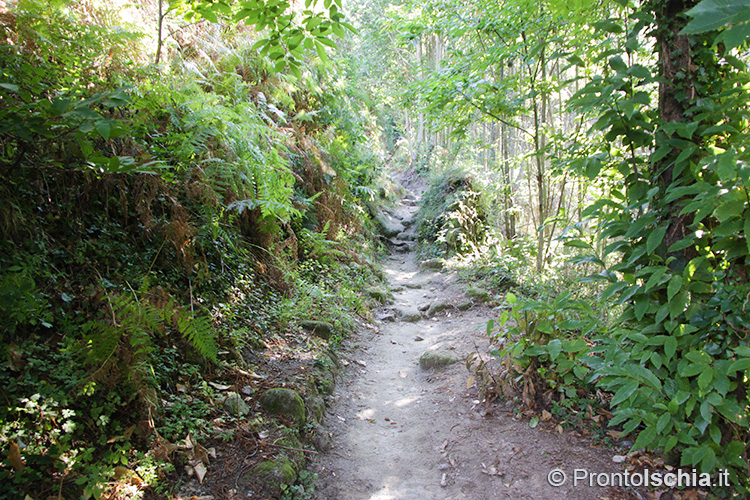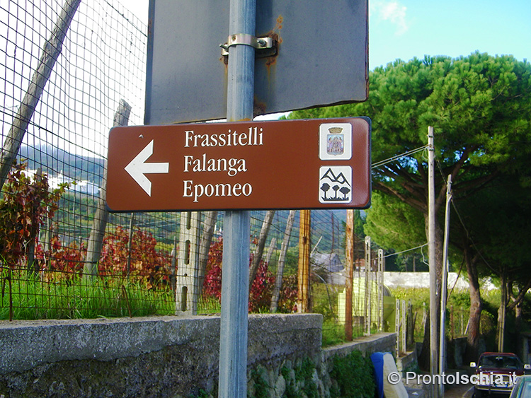L’alternativa, più adatta agli amanti del trekking, è imboccare Via Nuova Falanga poco dopo il cimitero di Serrara Fontana. Si tratta di un bel sentiero di montagna che conduce all’omonimo bosco di castagni, via Frassitelli, una piccola e suggestiva selva di acacie che regala una vista meravigliosa della costa sud-occidentale di Forio. L’ingresso dei Frassitelli è segnalato sulla destra da un portale in pietra verde che collega il sentiero della Falanga con l’altro della Pietra dell’Acqua, la "cresta dell’isola d’Ischia" da cui è possibile arrivare fino all’eremo di San Nicola e alla vetta del Monte Epomeo a 789 metri sul livello del mare.