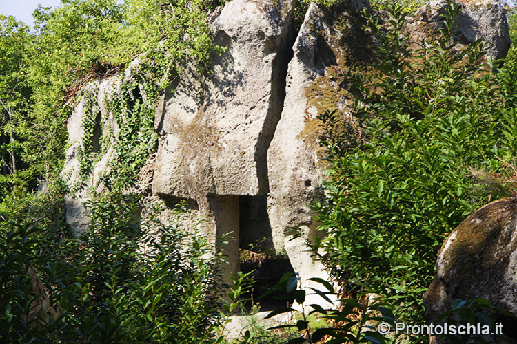 . Oltre che per il bosco di castagni e la straripante macchia mediterranea, la Falanga è famosa perché reca numerose tracce dell’architettura rupestre dell’isola d’Ischia. I grossi blocchi di tufo verde che si incontrano qua e là nel bosco venivano infatti trasformati dalle maestranze locali in ricoveri temporanei, cisterne per la raccolta dell’acqua piovana, cellai per la conservazione del vino e, addirittura, in "palmenti", le vasche di lapillo dove veniva spremuta l’uva al tempo della vendemmia.