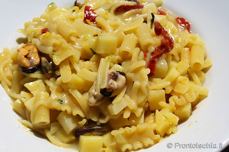 L'abbinamento patate e cozze non sta bene solo con l'insalata di polpo. Se non ci credete provatele con la pasta mista. Non ve ne pentirete!