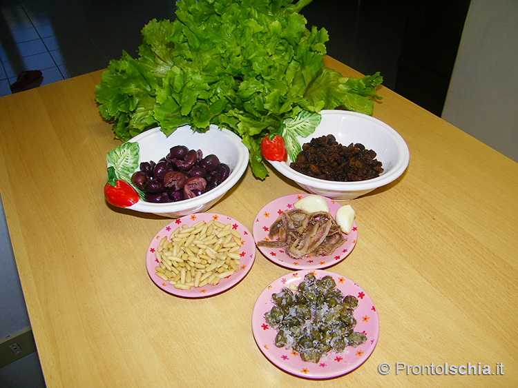 | 50 gr. di capperi; | 100 gr. di uva passa; |
