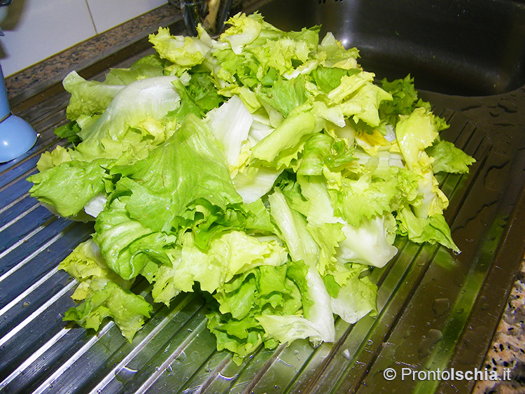 | 2 fasci di scarola liscia; | 100 gr. di olive nere di Gaeta denocciolate; |