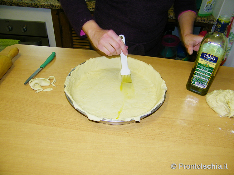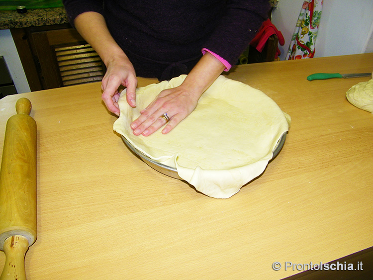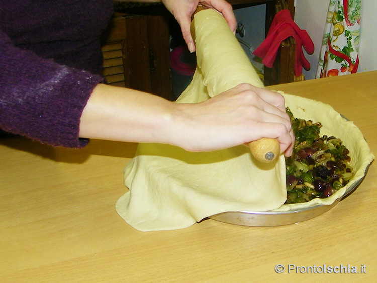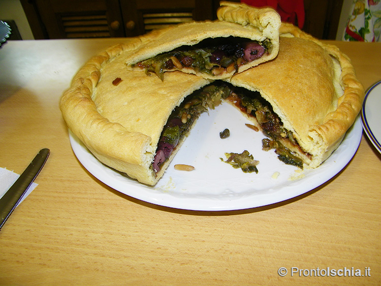 La pizza di scarola è un piatto tipico della cucina napoletana, assai diffuso nelle feste natalizie e dell’ultimo dell’anno. Il Natale non è l’unico periodo dell’anno in cui la pizza di scarola è presente sulle tavole ischitane, anche se la tradizione imporrebbe di mangiare questa pizza farcita a mezzogiorno, come pranzo "leggero" in attesa dei cenoni del 24 e del 31 dicembre. Complici la facilità di preparazione e, soprattutto, il risultato finale, qualsiasi stagione dell’anno è quella giusta per preparare questo vero e proprio "must" della gastronomia partenopea, tuttavia ancora poco conosciuto fuori dai confini regionali.