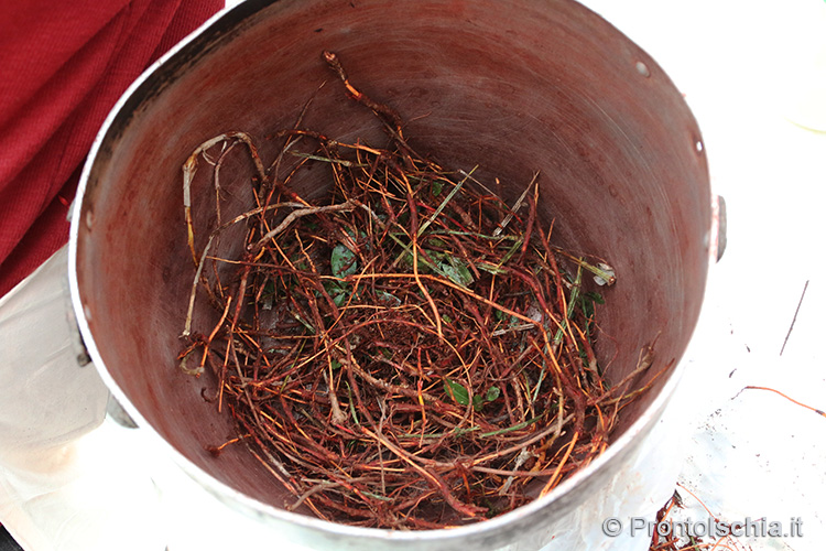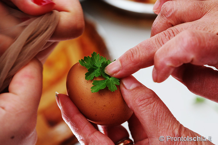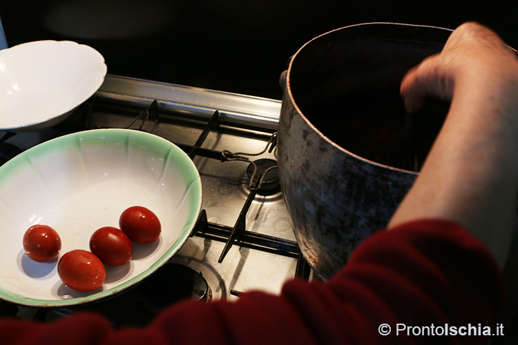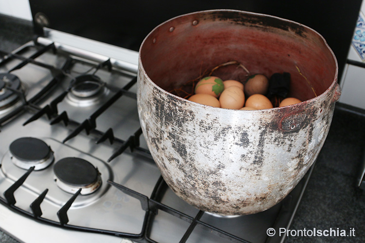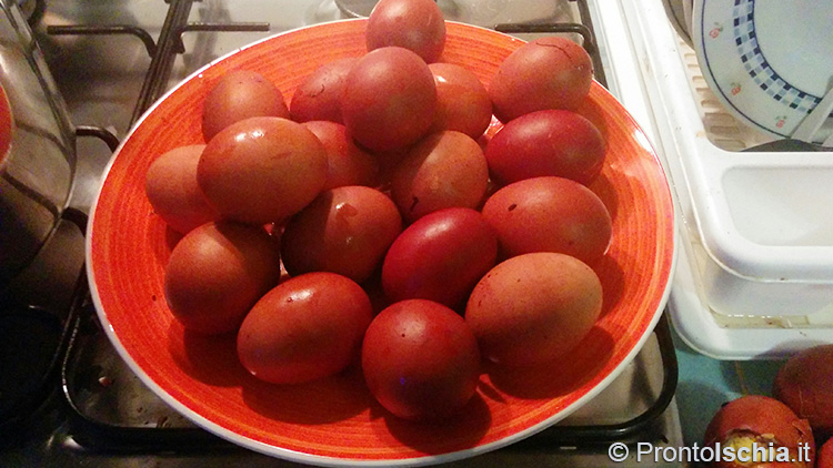 Qual è il legame tra i due territori? Le uova rosse di Pasqua. A Ischia si colorano con la robbia (in dialetto 'a rova), pianta selvatica con cui, volendo, è addirittura possibile tingersi i capelli. La robbia sull'isola cresce in abbondanza e chi è in grado di riconoscerla va direttamente nei boschi a prendere quella che gli serve; sennò, ci sono i fruttivendoli che in ossequio alla tradizione vendono le radici dell'arbusto durante la settimana pasquale.