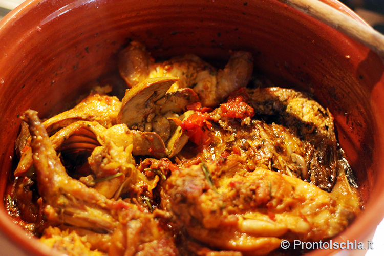 Speciale Ischia a tavola 2Ischia - l'abbiamo ripetuto più volte - è un'"isola di terra". Un posto in cui, storicamente, i contadini sono sempre stati assai più numerosi dei pescatori. Merito della fertilità del suolo vulcanico; merito, soprattutto, delle antiche maestranze, capaci di enormi sacrifici pur di strappare suolo coltivabile a una natura assai difficile. I risultati, però, sono sempre stati ben al di sopra delle aspettative, come chiunque può verificare di persona davanti a uno dei tanti orti domestici in bella mostra a fianco le abitazioni degli ischitani. E, quasi sempre, nelle terre dei contadini dell'isola d'Ischia, c'è uno spazio dedicato all'allevamento dei conigli. Si stima che sull'isola il consumo delle pregiate carni bianche dell'animale sia mediamenjte 3 o 4 volte superiore al resto d'Italia. Di fronte a queste cifre si può parlare di qualcosa in più che una "semplice" tradizione. Il coniglio, insieme alla vite, è l'emblema della cultura contadina dell'isola d'Ischia e, per rendersene conto, bisogna fare attenzione alla cura dei dettagli nella preparazione del piatto simbolo della gastronomia ischitana.