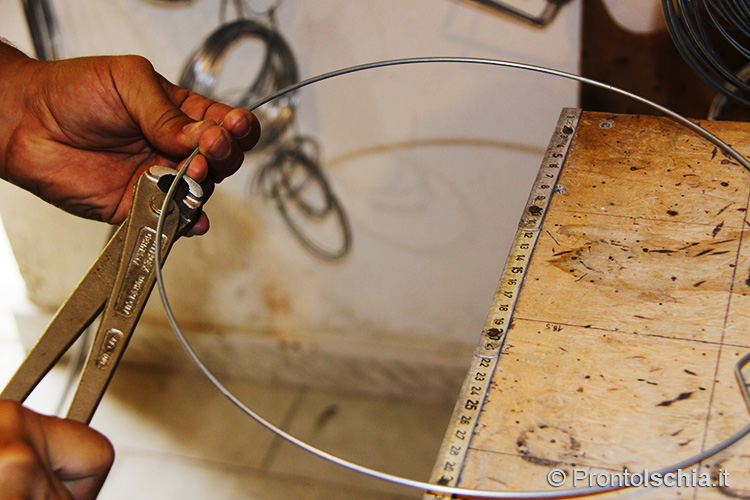 Il secondo step è la realizzazione della struttura in fil di ferro su cui poi verrà ricamata la rafia. In questa fase occorre sagomare il filo e poi, a seguire, saldarlo.
