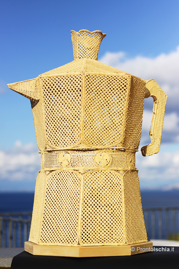 Le creazioni in raffia di "Monti Artigianato" non smettono mai di stupire. L’ultima invenzione è un grosso lume a forma di moka. L’idea è venuta al giovane Pasquale, terzo genito di Antonio Monti, l’uomo che da anni porta avanti la tradizione di famiglia ottenendo riconoscimenti importanti su quotidiani a tiratura nazionale e su riviste specializzate.