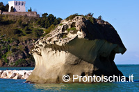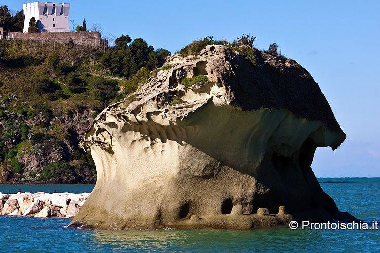 Il simbolo più iconico di Lacco Ameno è il Fungo, uno scoglio tufaceo che si erge dal mare all’ingresso del paese. Secondo la narrazione del poeta locale Giovan Giuseppe Cervera, la Natura, addolorata per la tragica sorte di due giovani amanti inghiottiti dalle onde, avrebbe innalzato questo monumento naturale a eterna memoria del loro amore. In realtà si tratta di un blocco di tufo verde, la pietra preziosa dell'isola d'Ischia.