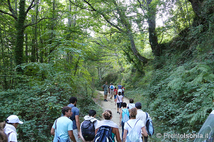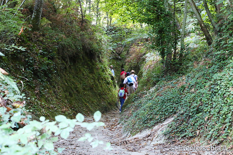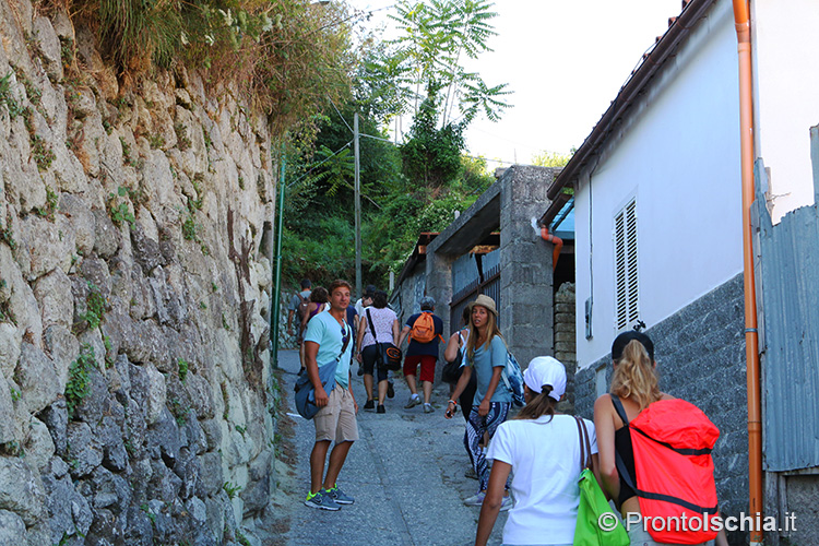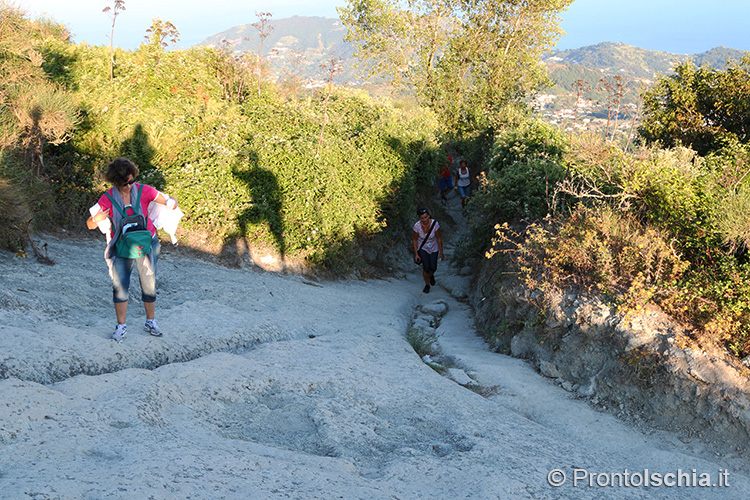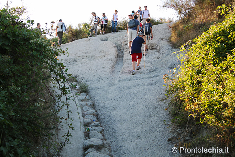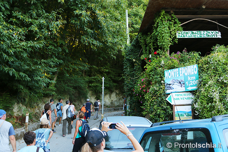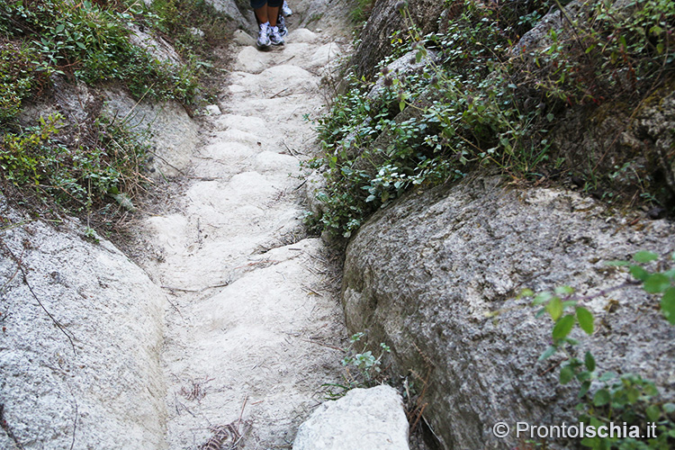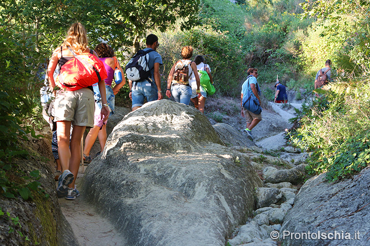 , imboccando l’ex mulattiera che da Piazza IV Novembre a Fontana porta fin su l’eremo di San Nicola (eccezionalmente visitabile per l’occasione) e da lì - proprio sopra l'omonima chiesa rupestre -, alla cima del Monte Epomeo. Solo l’ultimo tratto di strada si collega a un "tratturo", traccia degli antichi sentieri di montagna originatisi nel "soffice" tufo che abbonda da questo lato dell’isola d’Ischia.
