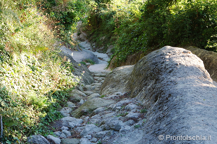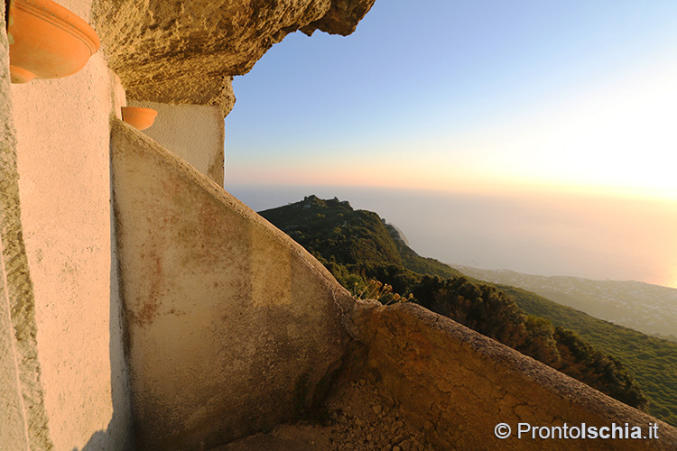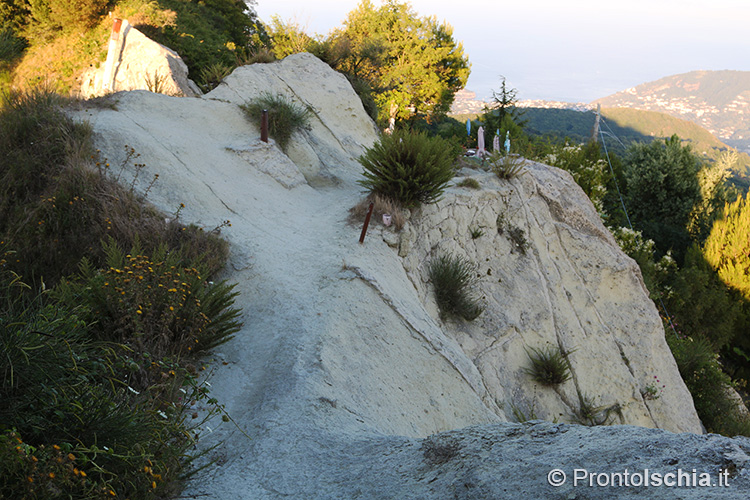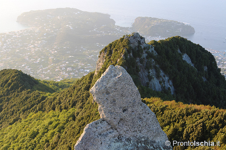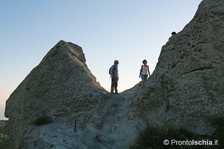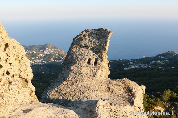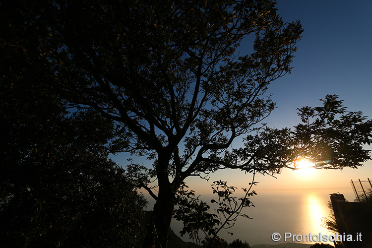 per godere della magia del tramonto ischitano. Occorre proseguire per il sentiero che porta alla "Pietra dell’Acqua", un mega blocco di tufo così chiamato perchè scavato all’interno per farne una cisterna di raccolta dell’acqua piovana. Sono proprio i pendii della "Cresta dell’Isola" (l’altro nome con cui è conosciuto questo sentiero), il posto migliore per godere del tramonto ischitano con lo sfondo, assai suggestivo, delle isole pontine Ventotene e Santo Stefano.
