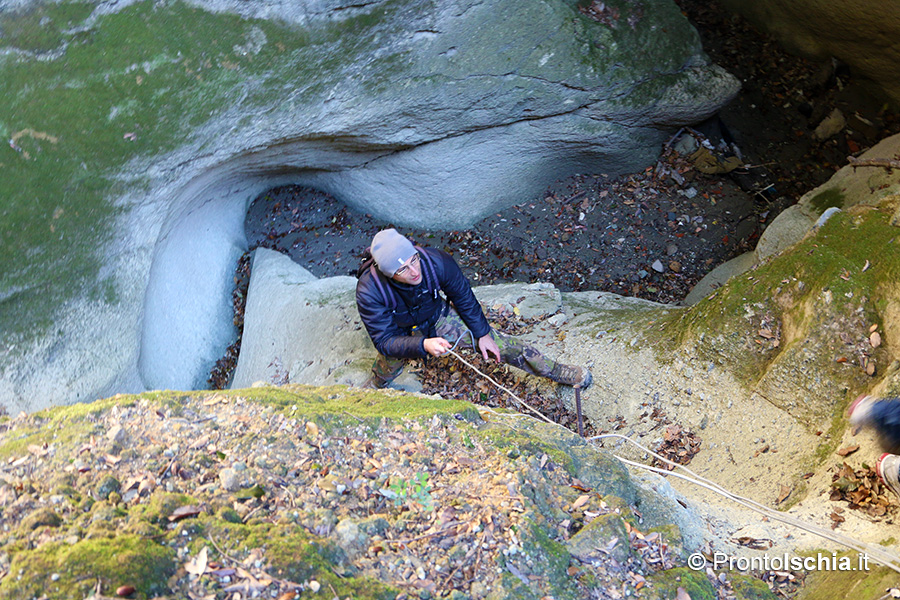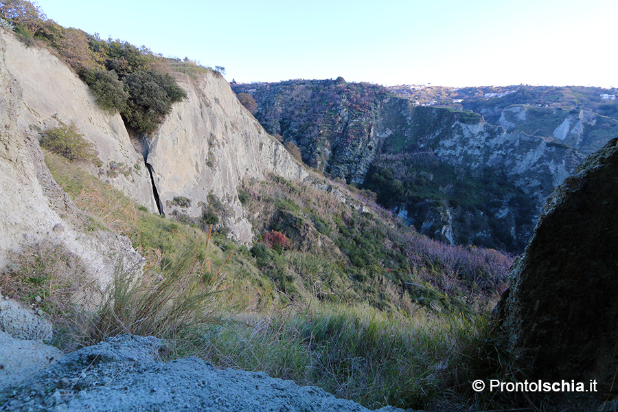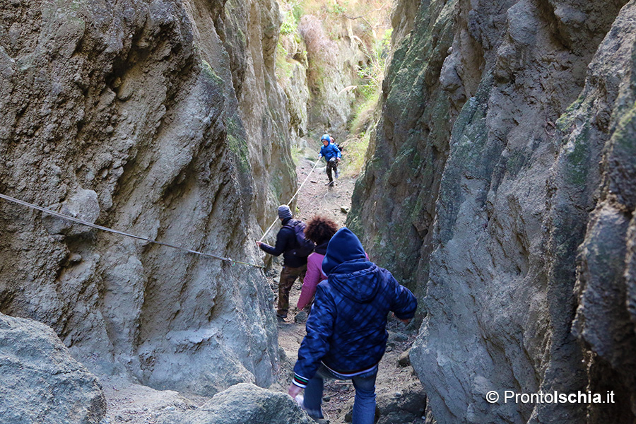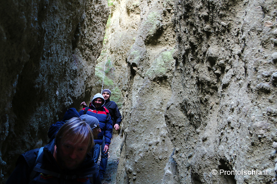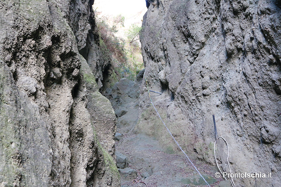 Qualche minuto e ci si trova davanti a una serie di gole strettissime, in alcuni punti ancora più strette di quelle attraversate in precedenza per arrivare ai Maronti. Fenditure che, se osservate dal mare, danno l'impressione di una "scorza di melone troppo matura", come osservava efficacemente negli anni '30 del secolo scorso il famoso scrittore inglese Norman Douglas. Veri e propri abissi in cui - annota sempre Douglas - trovava sovente rifugio chi aveva problemi con la giustizia, "aspettando il momento propizio per fuggire sul continente".