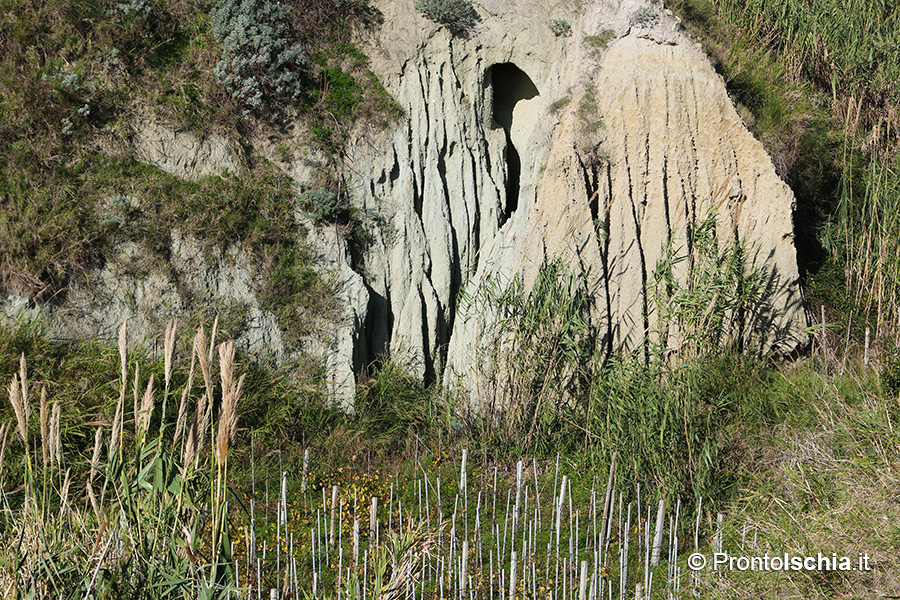 Poche centinaia di metri e il paesaggio cambia ancora: la macchia mediterranea cede improvvisamente il passo a un paesaggio spoglio, quasi lunare, interrotto qua e là da robuste e possenti agavi. Siamo al cospetto dei Pizzi Bianchi, pinnacoli d'argilla disegnati dall'azione congiunta di acqua e vento. Proseguendo per il sentiero che corre di fianco a questo magnifico scorcio si arriva - non senza qualche difficoltà - al bacino idrotermale di Cavascura e da lì fin su la spiaggia dei Maronti.