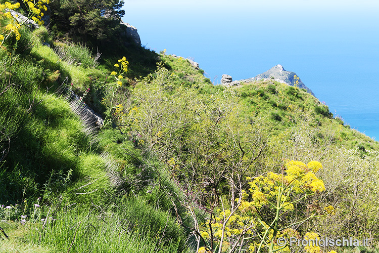 Non è l'unico particolare: l'altra cosa che balza agli occhi, infatti, è che qui, lungo il versante occidentale del Monte Epomeo, i piani di terreno sono assai meno scoscesi e impervi di quanto non sia per il versante orientale dove, invece, si raggiungono punte di pendenza del 40% senza, tra l'altro, che vi siano mura a protezione dei preziosi filari di vite.
