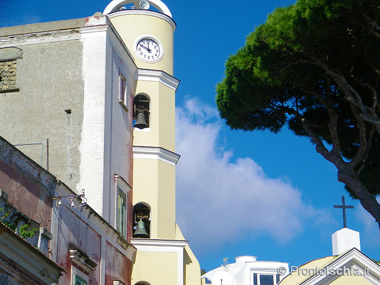 Non solo. Perché proprio davanti il portale d’ingresso della Chiesa di Santa Maria del Carmine comincia la bella passeggiata di Via Andrea Mattera, una delle tante escursioni a Ischia che termina proprio nella piazzetta dell’esclusivo borgo di Sant’Angelo. Se non vi va di camminare, la visita di questa chiesa della seconda metà del '600 è senz’altro un’ottima alternativa. Molto bello il campanile su tre livelli che poggia sull’arco sotto il quale passa la Strada provinciale da cui si può proseguire per Ischia o ridiscendere a Forio.